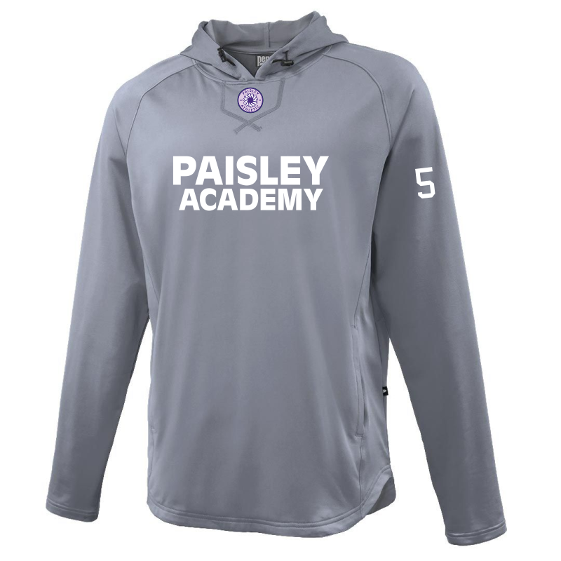 Heavyweight performance polyester fleece. Raglan shoulder and tunnel pocket. Neckline detail. Unlined hood with toggle adjustable drawcord.